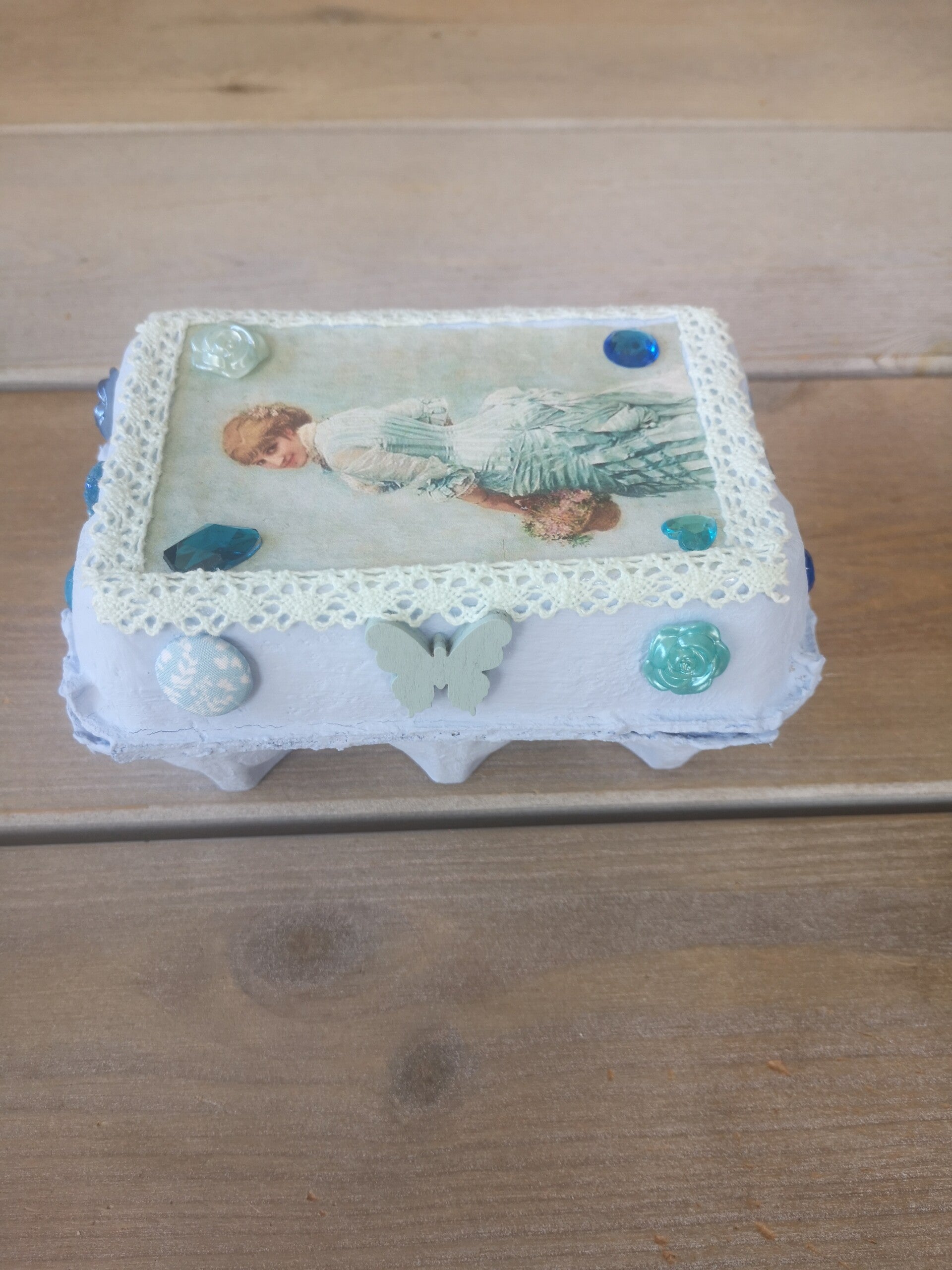BOITE A OEUFS DÉCORÉE. Peinte:Bleue. Exclusivement par 2. 30€ les 2